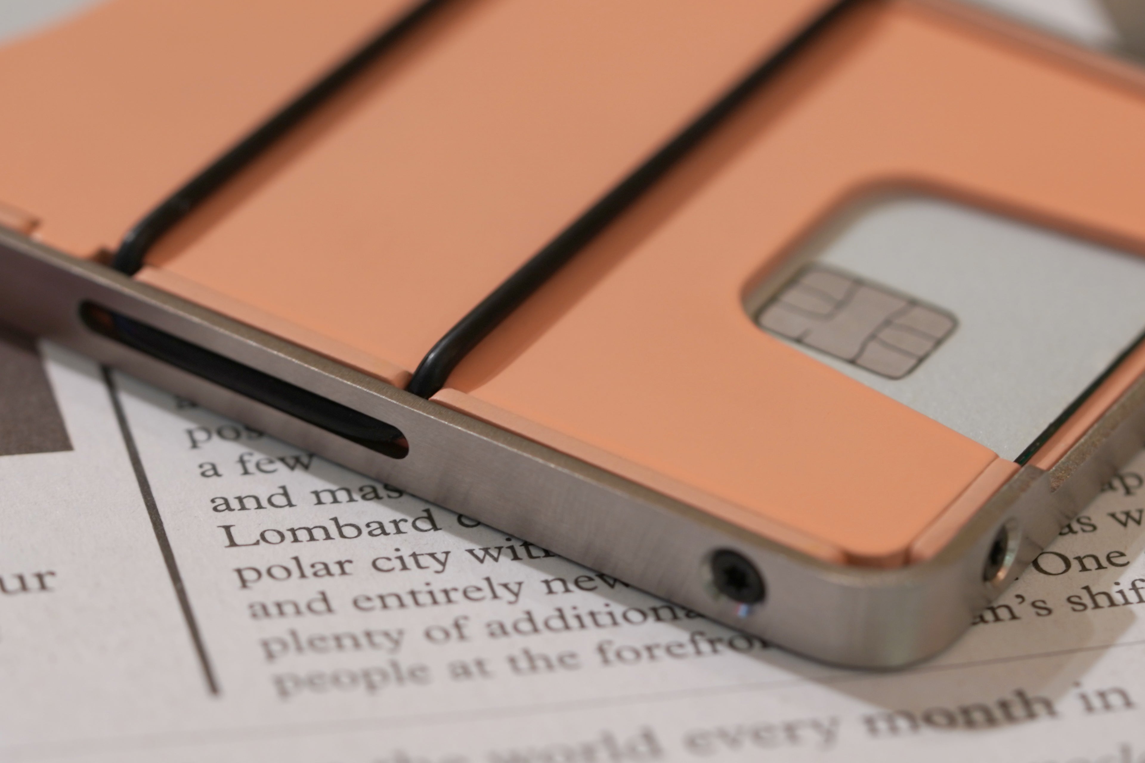 Constructed from 1.5mm sheet metal, this card holder is assembled from two powder coated aluminium plates and a robust stainless steel frame to keep your cards safe and compact. The back plate features a cut out detail for easy access and an o’ring to secure your notes. Streamline your spending with this sleek piece of design.
